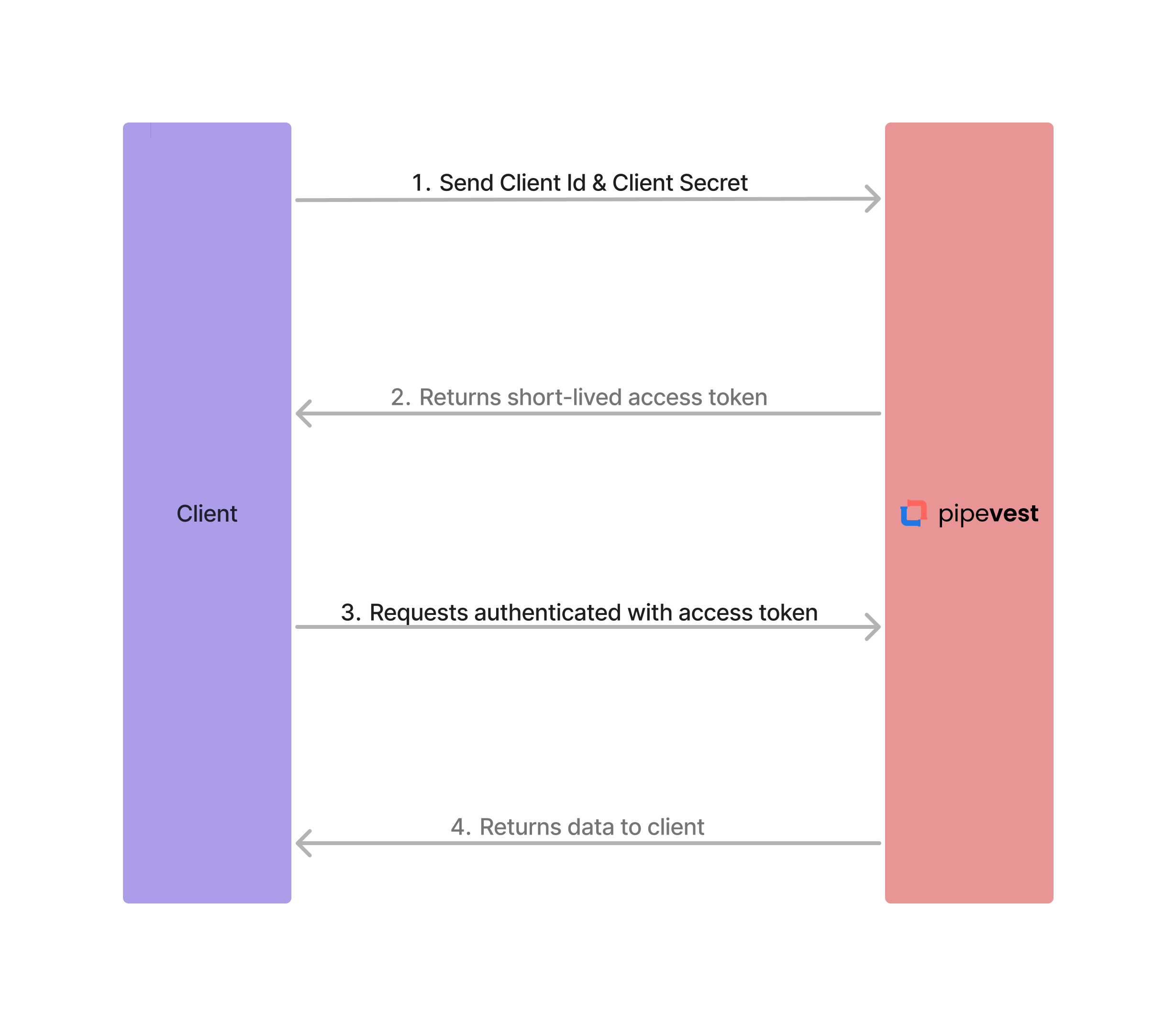 The following diagram illustrates the authentication flow with Pipevest.